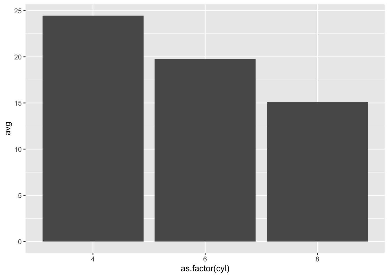 ggplot(aes(x = as.factor(cyl), y = avg)) +